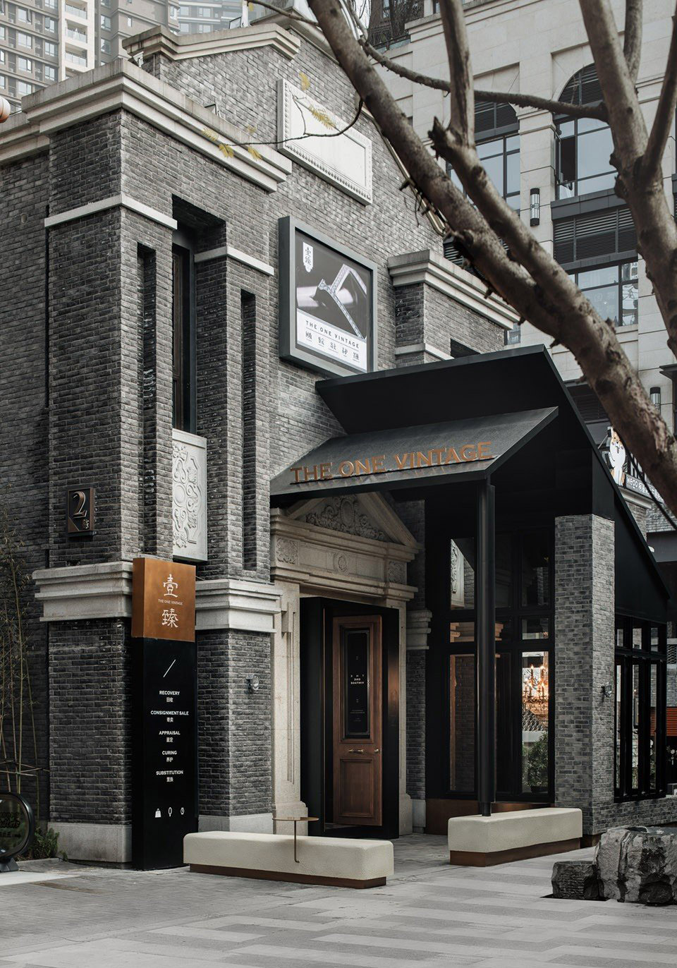 作為初創(chuàng)品牌的「壹臻」,其首家門店位于重慶市南岸區(qū)彈子石老街,是一棟仿民國(guó)式的獨(dú)立建筑。其物業(yè)本身,具有較強(qiáng)的年代感,這無(wú)疑是為該中古門店的視覺(jué)呈現(xiàn),創(chuàng)造了一定的基礎(chǔ)條件。但也正是因?yàn)槠渫怀龅拿駠?guó)建筑形象,又為我們力求創(chuàng)新的空間設(shè)計(jì),造成了不小的物理環(huán)境障礙。再加上山城特有的地理因素,該物業(yè)背靠山體,面朝高墻,且商業(yè)環(huán)境的主交通流線并未與該物業(yè)產(chǎn)生直接的關(guān)聯(lián),甚至在主通道上,我們只能側(cè)視其建筑的一角……這都成為了在設(shè)計(jì)之初我們所面臨的挑戰(zhàn)。于是,如何讓過(guò)往的游客能關(guān)注到「壹臻」,并吸引他們進(jìn)入商店,將是我們首先要解決的問(wèn)題。